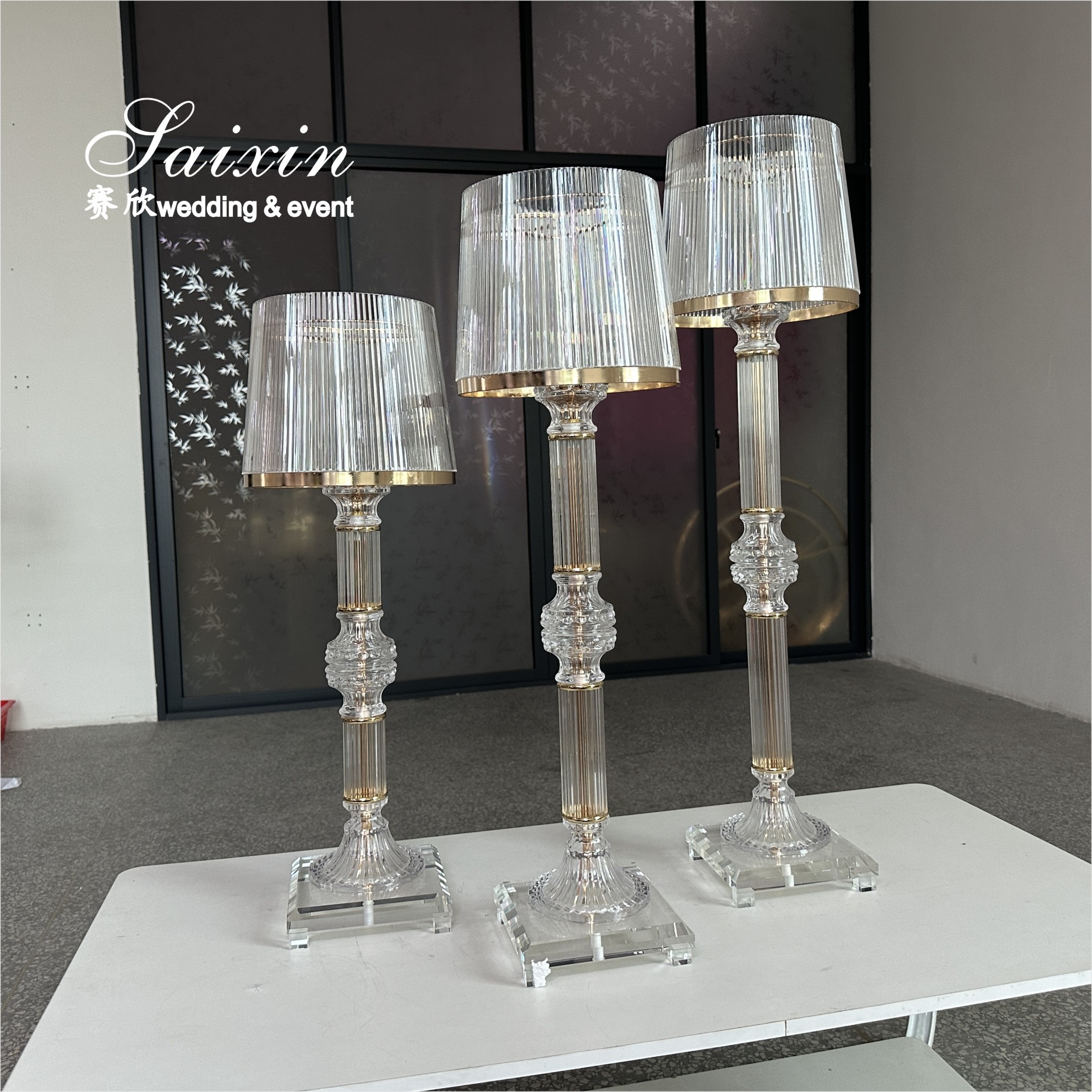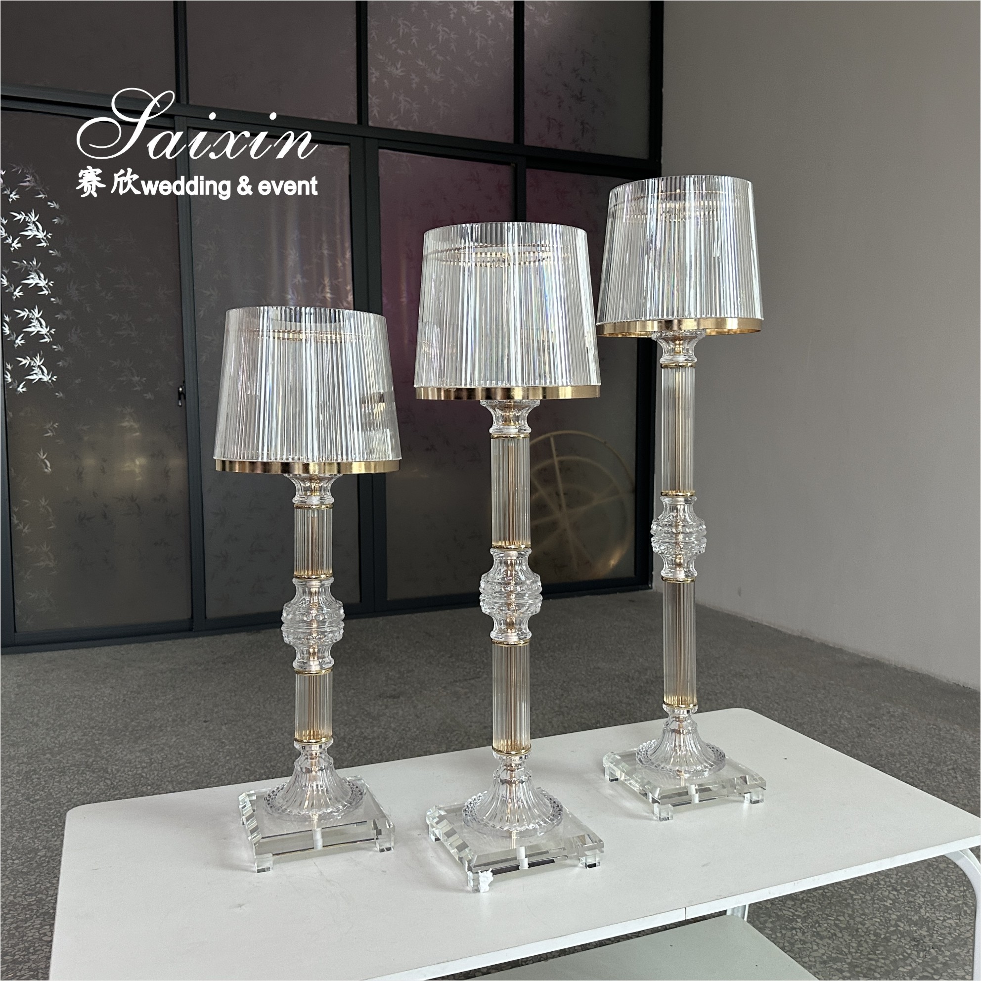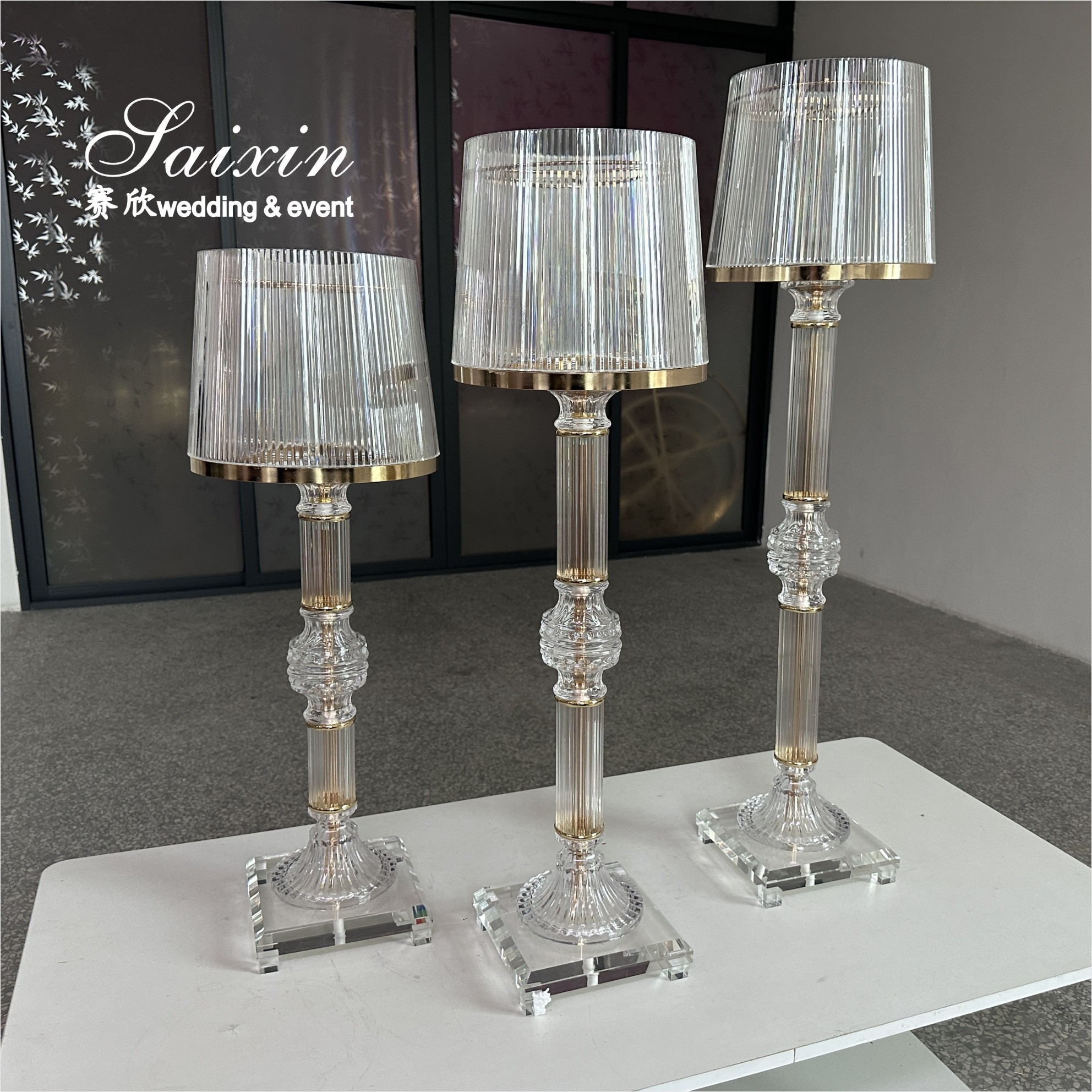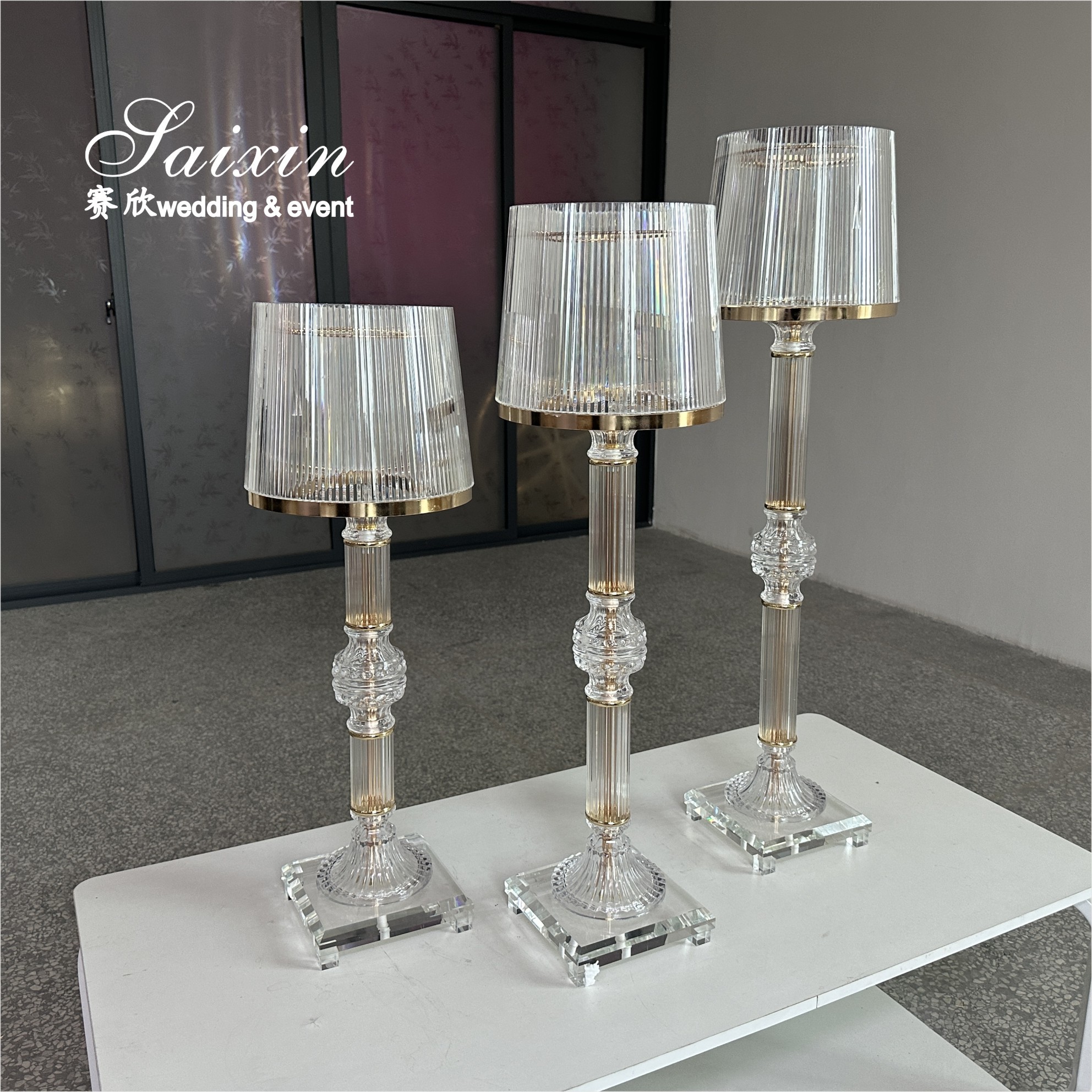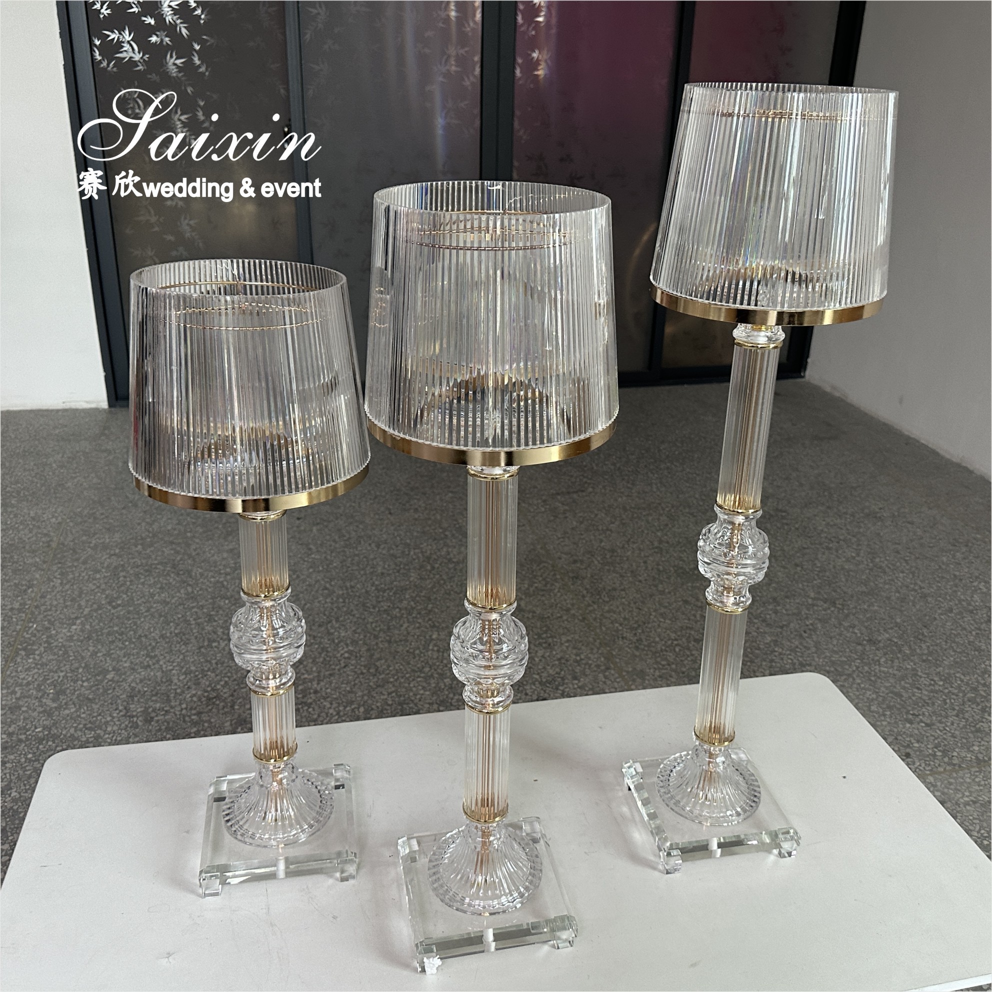| Hervorheben: | gold crystal candle holders,clear glass wedding centerpiece stands,3 piece ring shade candle holders |